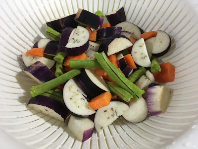 So, today I am gonna talk about "kampoeng" style dinner menu again. Remember the word "kampoeng" means the village, right? I will write another story about it and it is veggie curry and omelet. In addition, there is a story where I got the idea to cook Japanese rice with sweet potato.